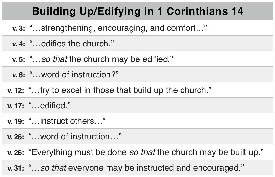 Paul actually tells people to be ready to share a tongue (1 Cor 14:26) and he says, “I want you all to speak in tongues” (v. 5). Further, Paul tells us that he spoke in tongues more than all the Corinthians (v. 18).[2] Paul said all of this even though “one who speaks in a tongue speaks not to men but to God; for no one understands him, but he utters mysteries in the Spirit” (v. 2). Therefore, even though tongues are unintelligible to the human mind unless one is given the gift of interpretation (12:10), to speak in tongues is not wrong or bad (see 14:39); although, it should not be done publicly unless there is an interpreter (v. 28).