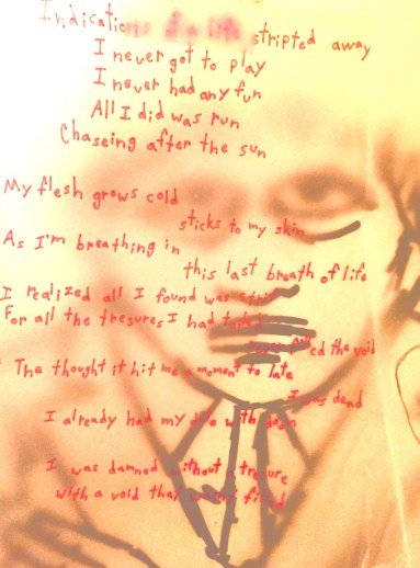 Greet the reaper as he reaps and weep because of the same This silly game We do this to ourselves We’ve mapped out our whole mission We sketched the whole thing out The plan for our destruction The black hole that is you It will consume you More, more is your mantra The only thing that will not go is “no” Inject the pleasure Digest the pain Is it all a game? You dance, You dance to your own dirge